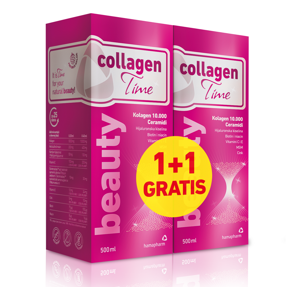 Kod CollagenTime Beauty linije proizvoda prve rezultate moguće je vidjeti već nakon 15 dana, zahvaljujući ceramidima. Kolagen značajno povećava elastičnost kože već nakon 4 tjedna, smanjuje bore već nakon 8 tjedana te dovodi do značajno veće akumuliacije prokolagena.